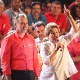 - A presidente Dilma Rousseff acena para o público durante comício com o candidato do PT à Prefeitura de Salvador, Nelson Pelegrino (à dir.), no bairro de Cajazeiras. No discurso, Dilma afirmou que não ia falar mal de ninguém, mas partiu para o ataque contra ACM Neto e disse ter "obrigação de ganhar a eleição" na capital baiana